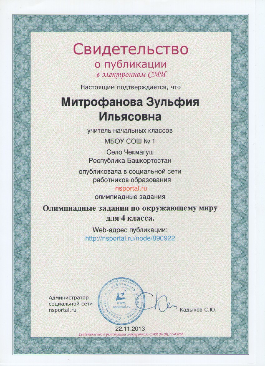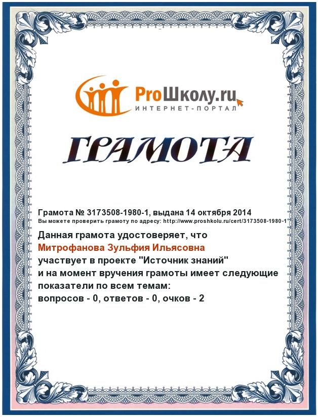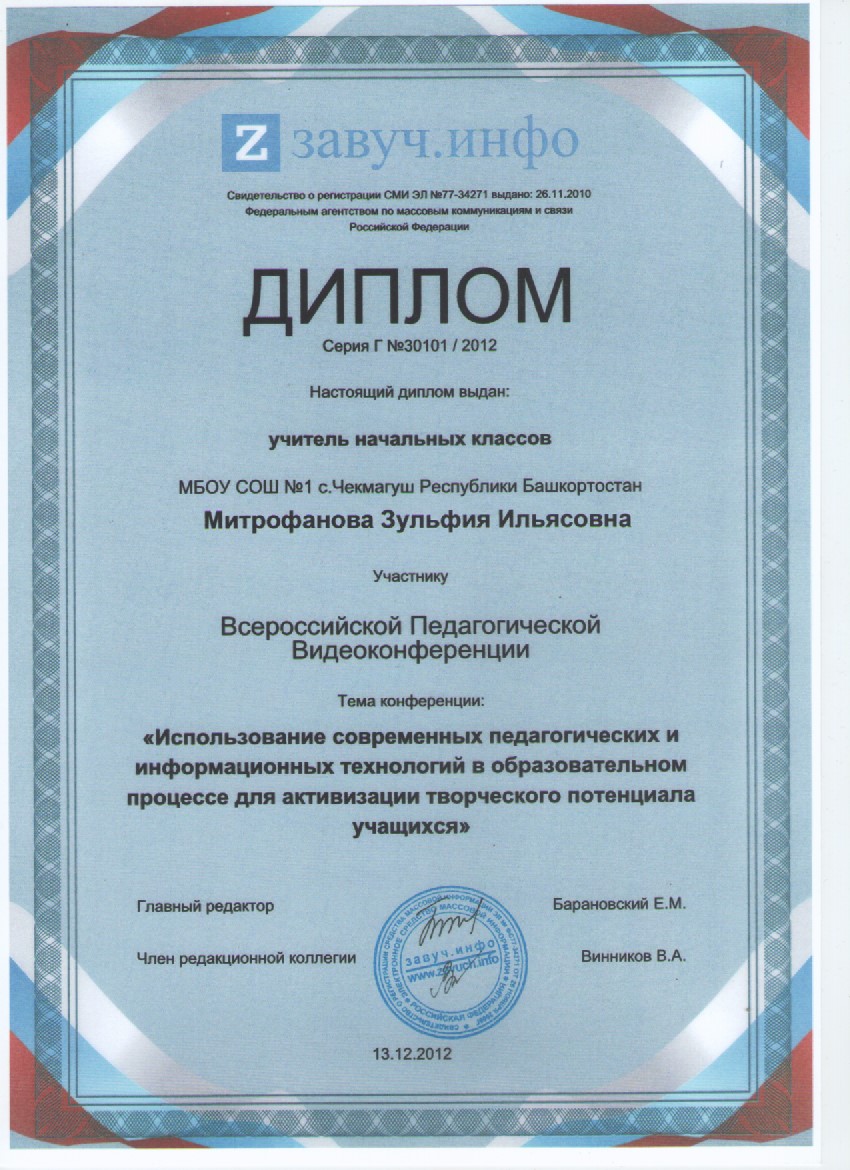 Персональный сайт учителя начальных классов Митрофановой Зульфии Ильясовны