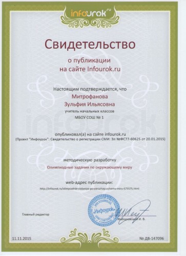 Персональный сайт учителя начальных классов Митрофановой Зульфии Ильясовны