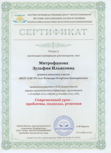 Персональный сайт учителя начальных классов Митрофановой Зульфии Ильясовны