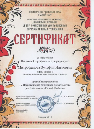 Персональный сайт учителя начальных классов Митрофановой Зульфии Ильясовны